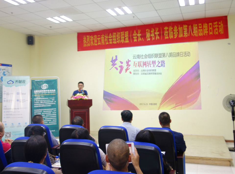 6月21日,由云南社会组织联盟主办、云南省互联网零售业协会协办的“云南社会组织联盟第八期品牌日活动暨共谈互联网转型之路”圆满举办。来自云南60余个协会、商会的会长或秘书长参加了活动。活动加深了协会、商会之间的相互交流和了解,促进了品牌企业的特色产品或服务宣传,实现了跨行业跨界的合作和强强联谊。