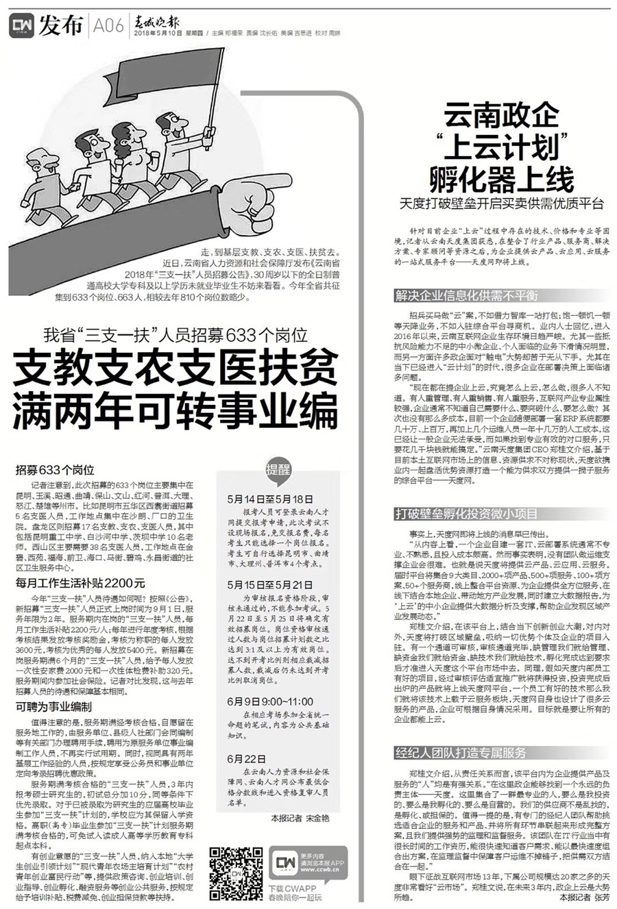 《春城晚报》关于尊龙凯时提名为“一站式商业服务云平台”的报道