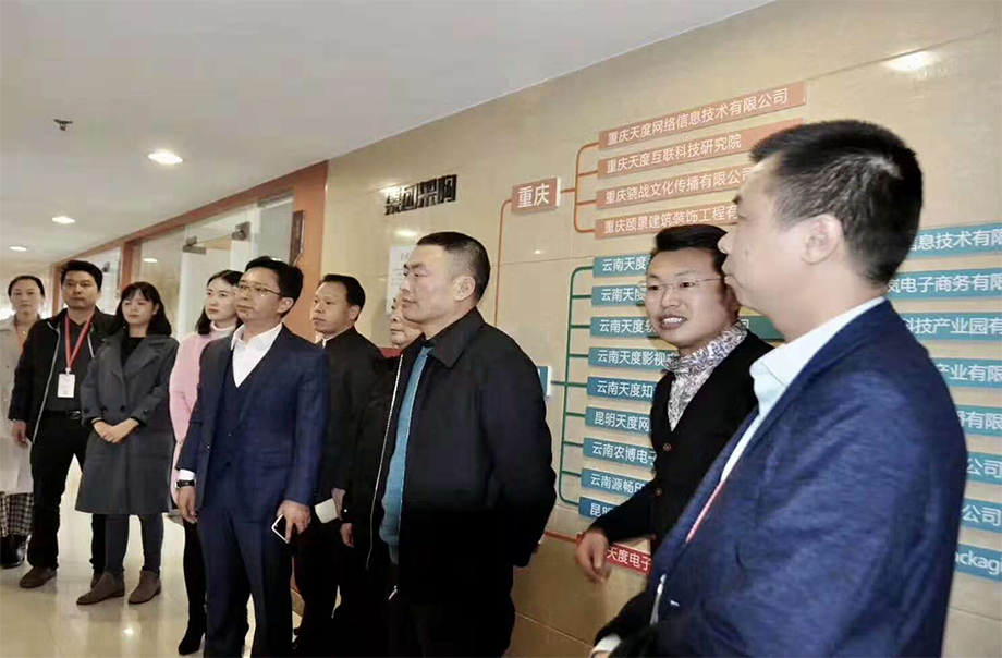 2018年10月11日,云南省重庆商会会长蒲治全、执行会长汪国财、常务副会长高柱明、秘书长张艳婷、副秘书长蒲智勇、宣传部王清一行莅临尊龙凯时集团考察交流。集团公司董事长郑桂文、党支部书记俞友刚、昆明电子商务协会秘书长胡晓玲、商务部张晓丽、运营部臧永梅与重庆商会领导就商会合作、渝商大数据平台建设等进行了交流和洽谈。
