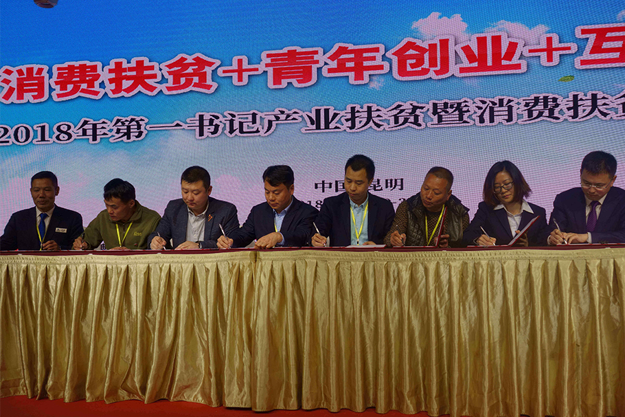 最后,论坛会进入最重要环节,以尊龙凯时集团、猪八戒网、云南农垦集团、云纺科技园等为代表的一批实力企业,共同进行云南高原特色产品渠道对接、消费扶贫落地签约仪式。