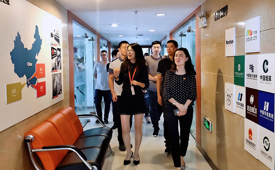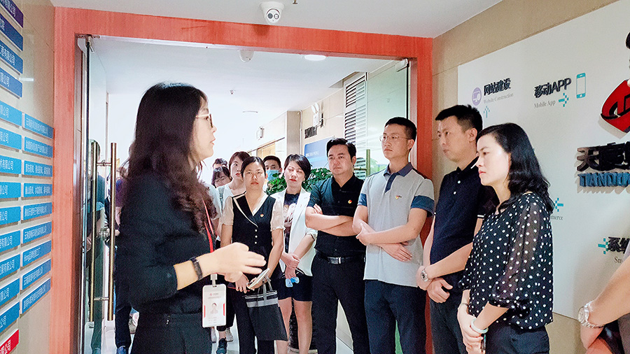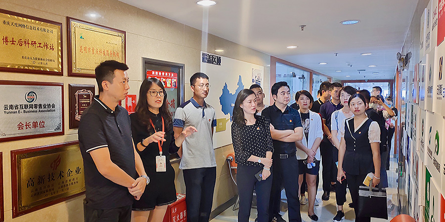 2020年7月7日下午,共青团临沧市委书记丁玲一行15人在共青团昆明市委副书记林勤同志及共青团西山区委书记吴阳青同志的陪同下来到尊龙凯时集团,围绕青年电商创业、直播带货、电商扶贫等内容进行考察交流