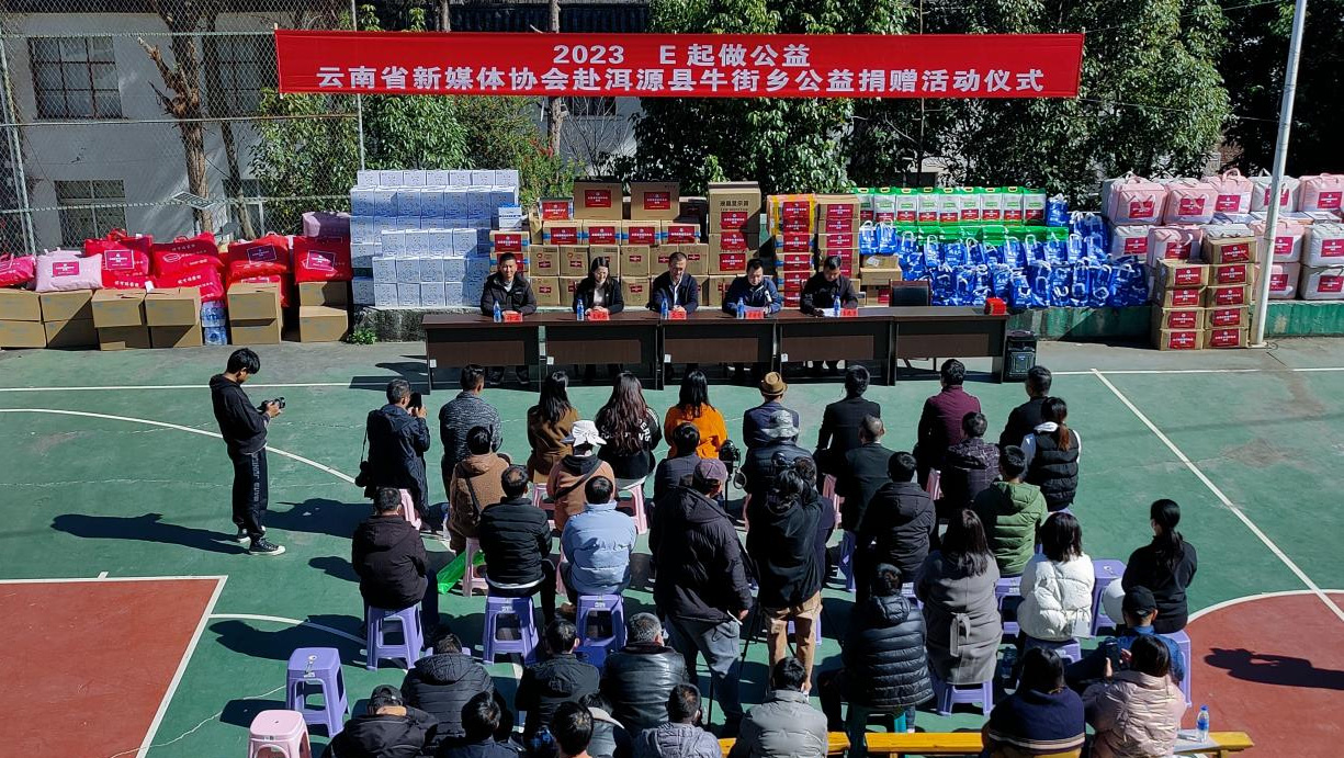 1月13日,云南省“2023 E起做公益”活动在大理州洱源县启动,当天,云南省新媒体协会组织了9家互联网企业前往洱源县牛街乡开展首场公益活动,向当地群众捐赠了急需的电脑及生活物资1112件,解决了群众的燃眉之急。群众说,“这是我们收到的最好的新年礼物!”
