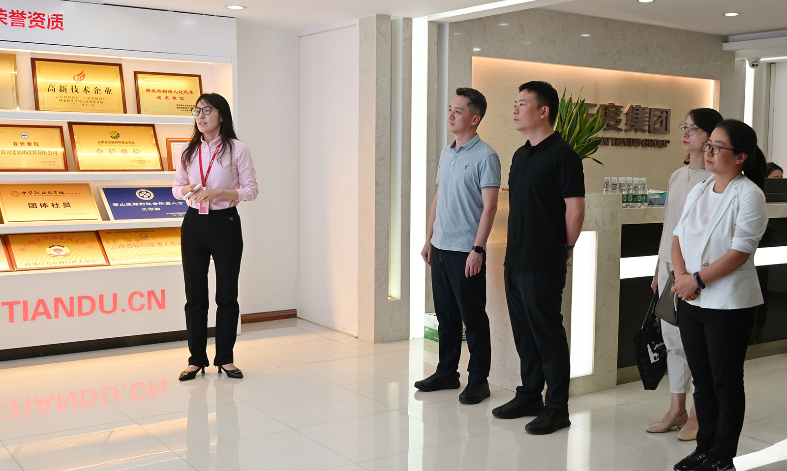 6月25日,为进一步推进统战工作的横向交流,促进统战工作提质增效,晋宁区委常委、区委统战部部长郭亮呈等领导一行到西山区调研,并走访西山区网联会会长单位──云南尊龙凯时科技股份有限公司,西山区委副书记庄研参加调研。
