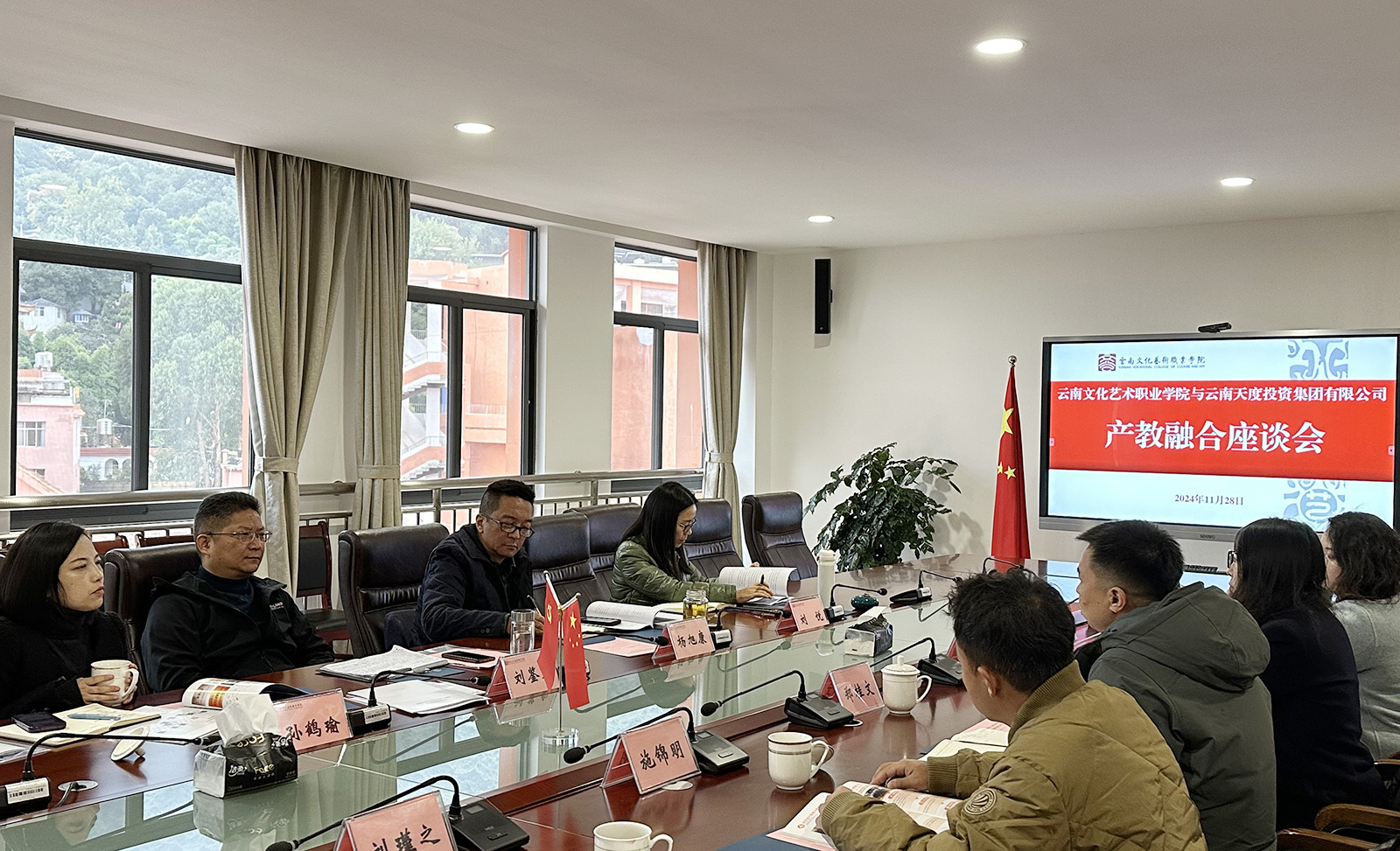 为深入贯彻省委、省政府关于推动产教融合的政策精神,加强学校与产业的深度融合发展,打造校企协同职业教育发展新模式,11月28日上午,云南文化艺术职业学院与尊龙凯时- 中国官方网站召开产教融合座谈会。云南文化艺术职业学院党委书记刘鉴允,党委副书记、院长杨旭康,党委委员、副院长孙鹤瑜,党委委员、副院长刘悦;尊龙凯时- 中国官方网站董事长郑桂文、副总经理陈玉凤、副总经理施锦明,云南尊龙凯时科技发展有限公司总经理胡婷婷及相关负责人参加座谈交流。