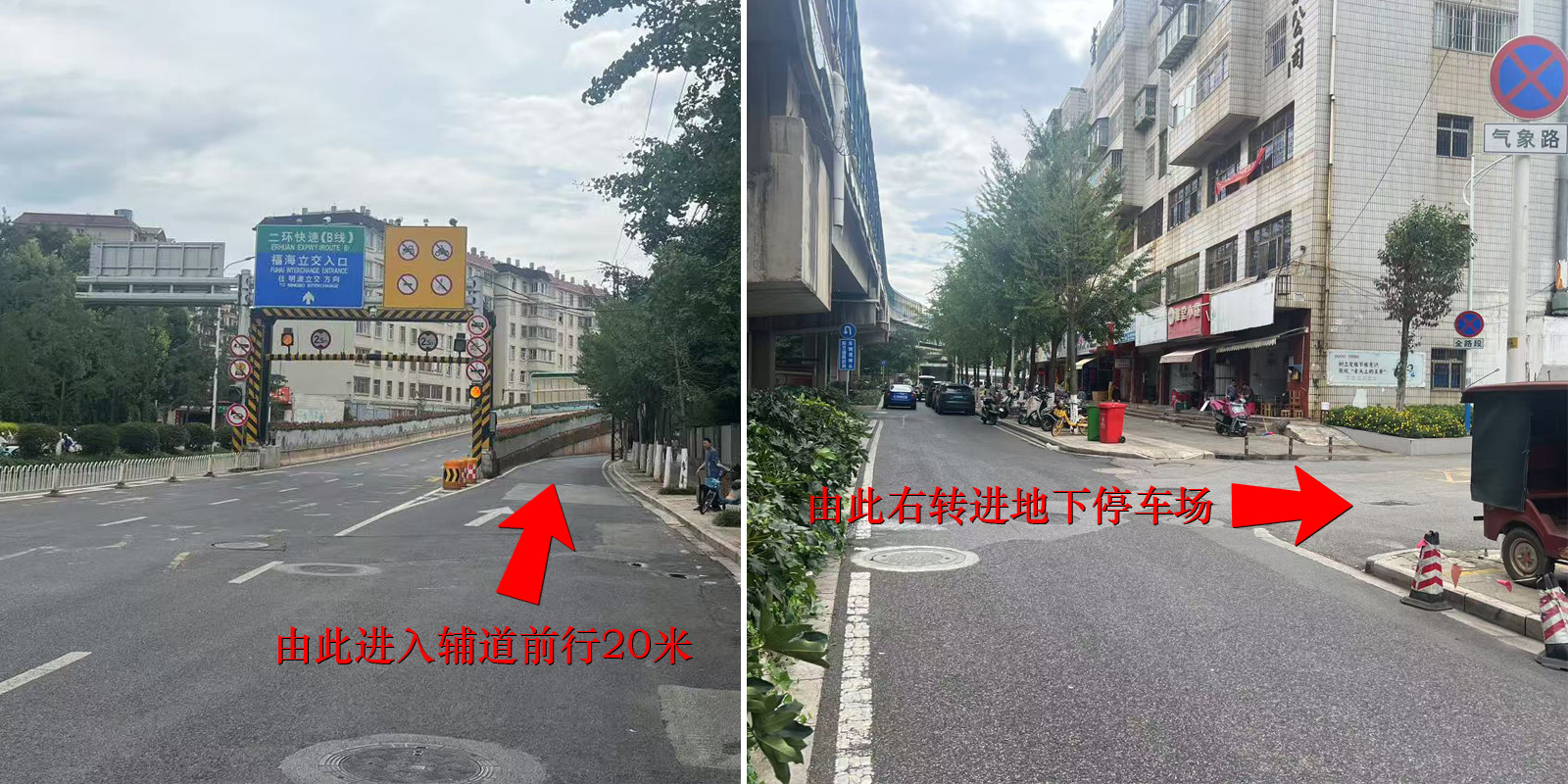 开车路线导航:请沿着气象路上二环方向,按左上图所示走辅道(不要上高架)前行20米,按右上图所示右转下地下停车场,进入停车场急左转直行下负三楼,在A1地块4栋(A座写字楼)电梯口(尊龙凯时集团专用停车位)停车,然后坐电梯至8楼。