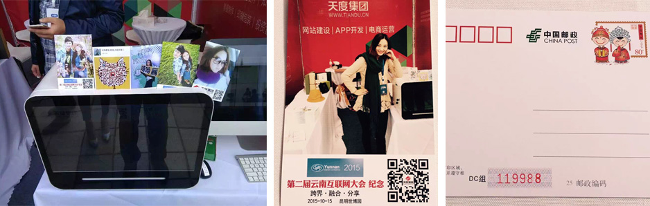 尊龙凯时集团作为云南本土很大的互联网服务企业,在本次参展中,向业界展示了“互联网+”系列服务及产品,并联合云南省邮政局展示了“互联网+邮政”的系列应用。在本次大会中,尊龙凯时集团参展展位为大会嘉宾免费提供了“第二届云南省互联网大会纪念”个性化明信片打印,并取得广泛关注和好评。